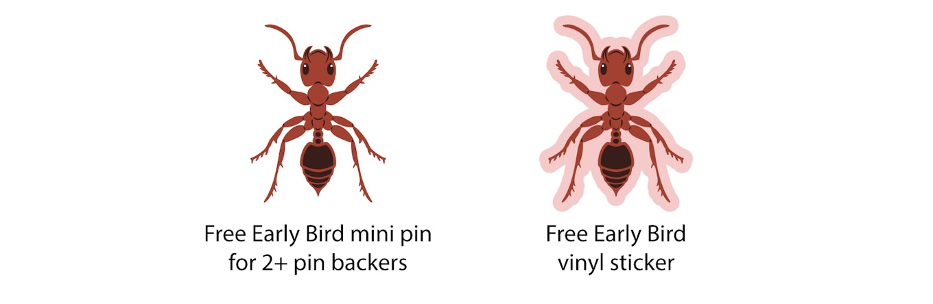 Returning backers who just pledged for my Pin Quest "Myths of the Underworld" campaign can combine their shipping for BOTH campaigns!! This means you'll get free shipping on this new insect campaign, and I'll combine both orders into your Pin Quest package! Pin production for both campaigns will be happening at the same time, so free shipping = more pins to add to your collection <3